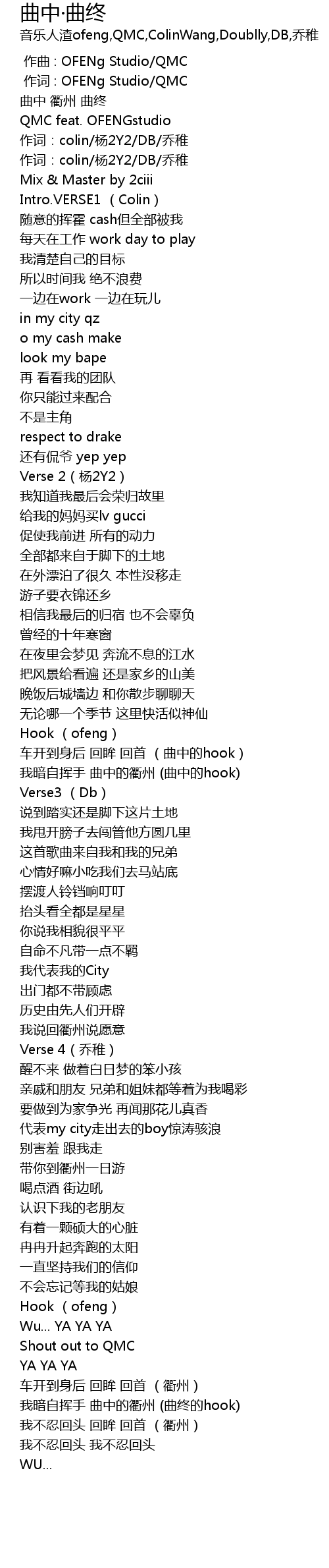 | [02:45.535] | 我暗自挥手 曲中的衢州 (曲终的hook) |