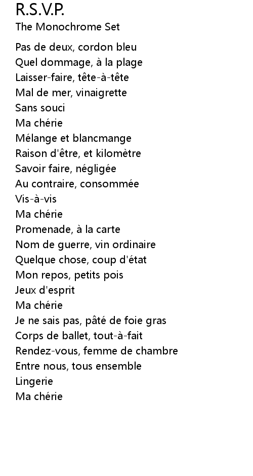 | Song | R.S.V.P. |