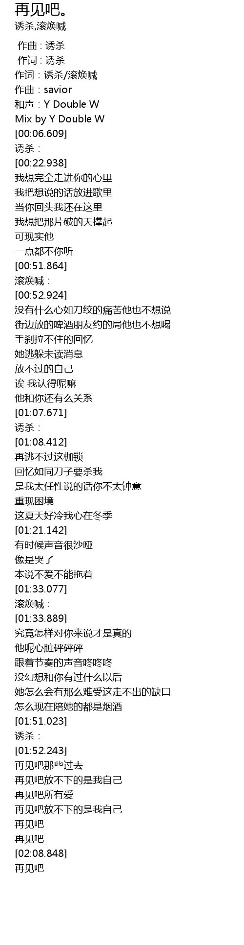 | [00:00.684] | 作词:诱杀/滚焕喊 |