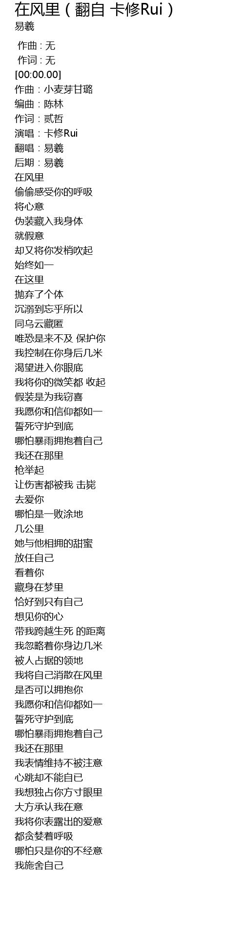 | [00:16.99] | 在风里 |