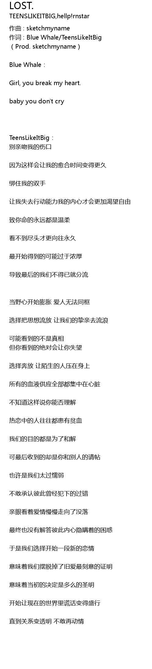 | 作词 : Blue Whale/TeensLikeItBig | |