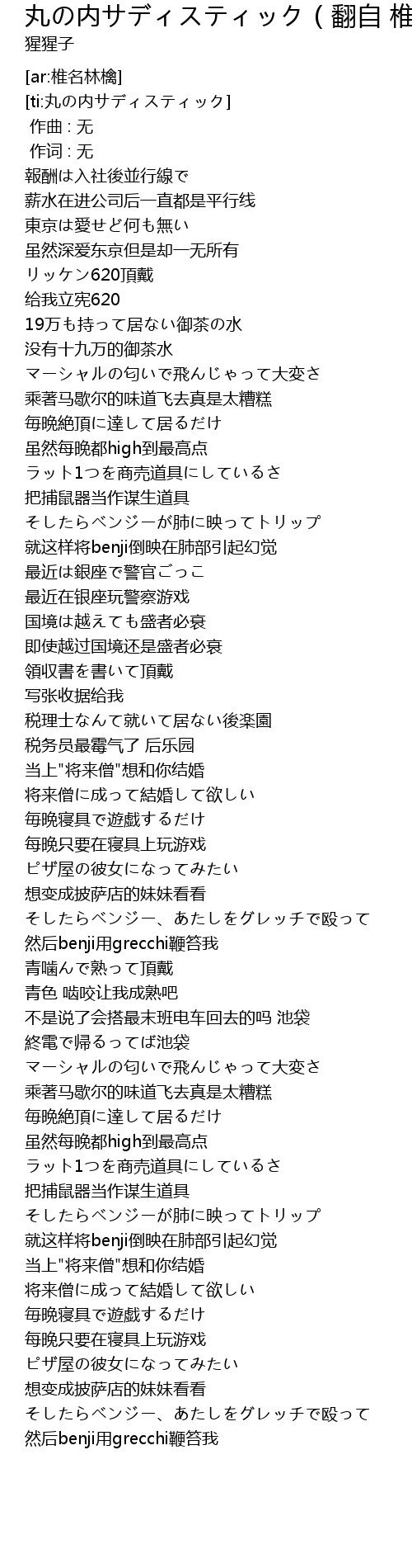 | Song | 丸の内サディスティック(翻自 椎名林檎) |