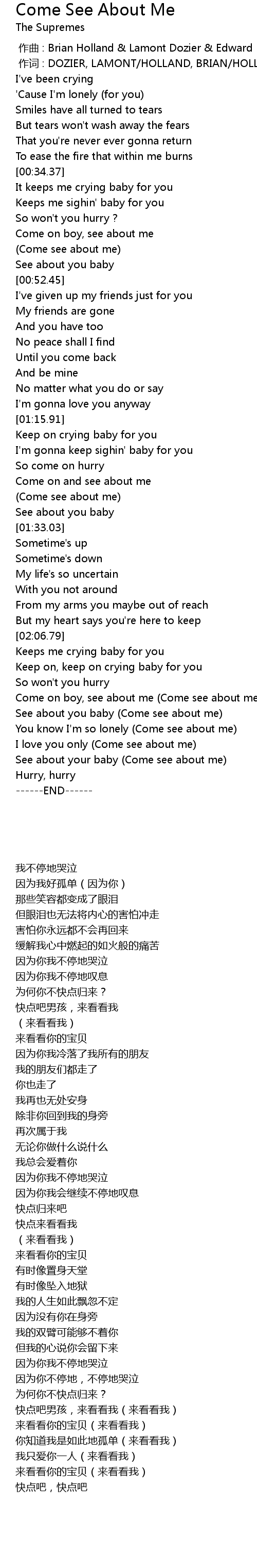 | [02:25.13] | You know I'm so lonely (Come see about me) |