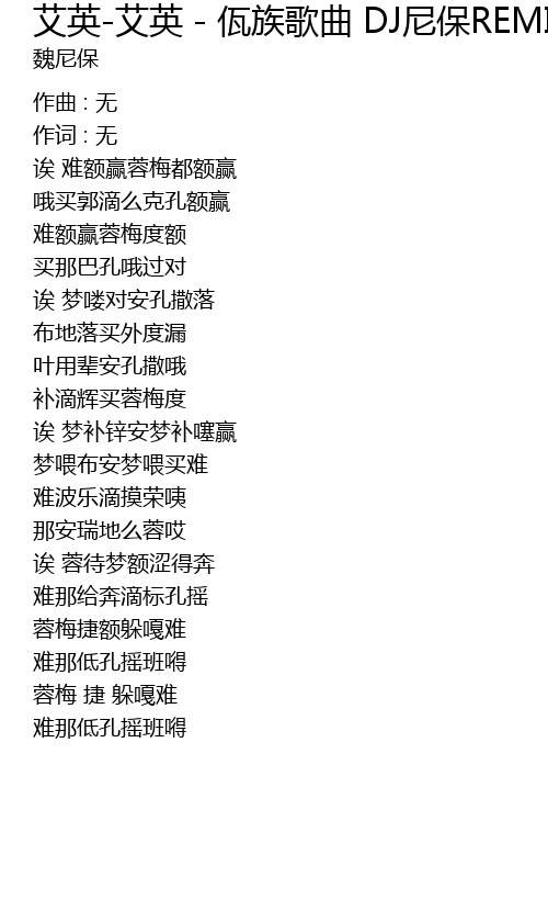 | 作词 : 无 | |