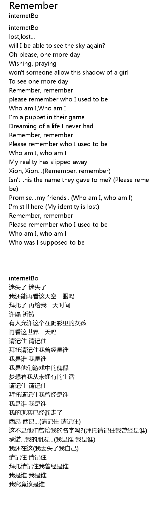 Remember Lyrics