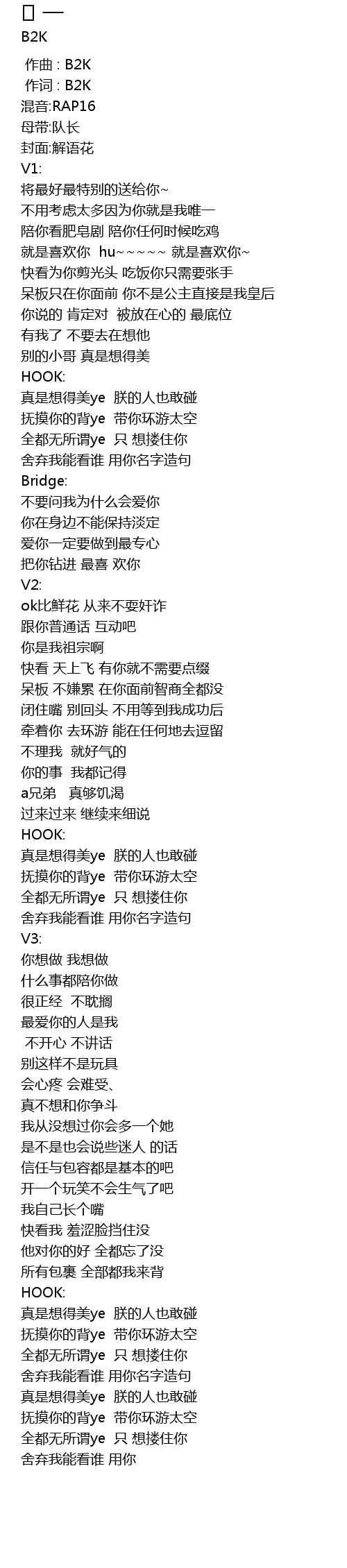 | [00:01.000] | 作词 : B2K |
