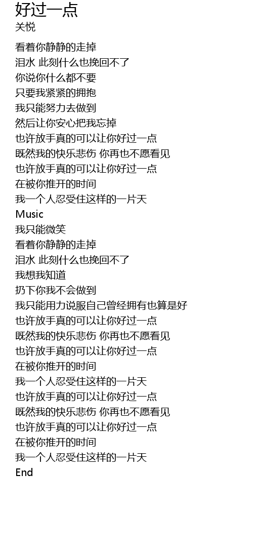 | [02:35.95] | 也许放手真的可以让你好过一点 |