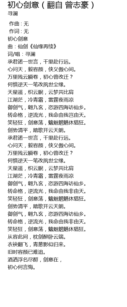 | [00:38.358] | wan li can yun shun juan, chu xin ceng gai qian? |