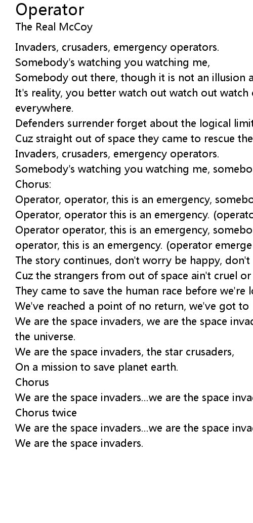 Operator operator, this is an emergency, somebody's watching me. operator, operator, this is an emergency. (operator emergency) |
