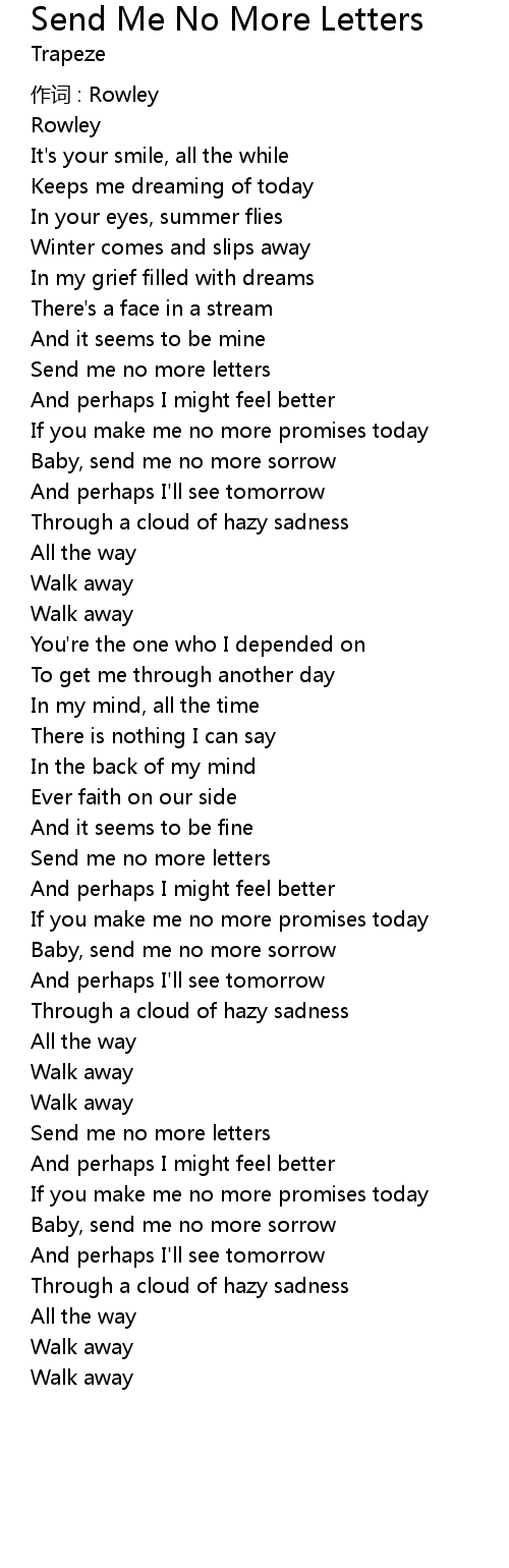 | Song | Send Me No More Letters |