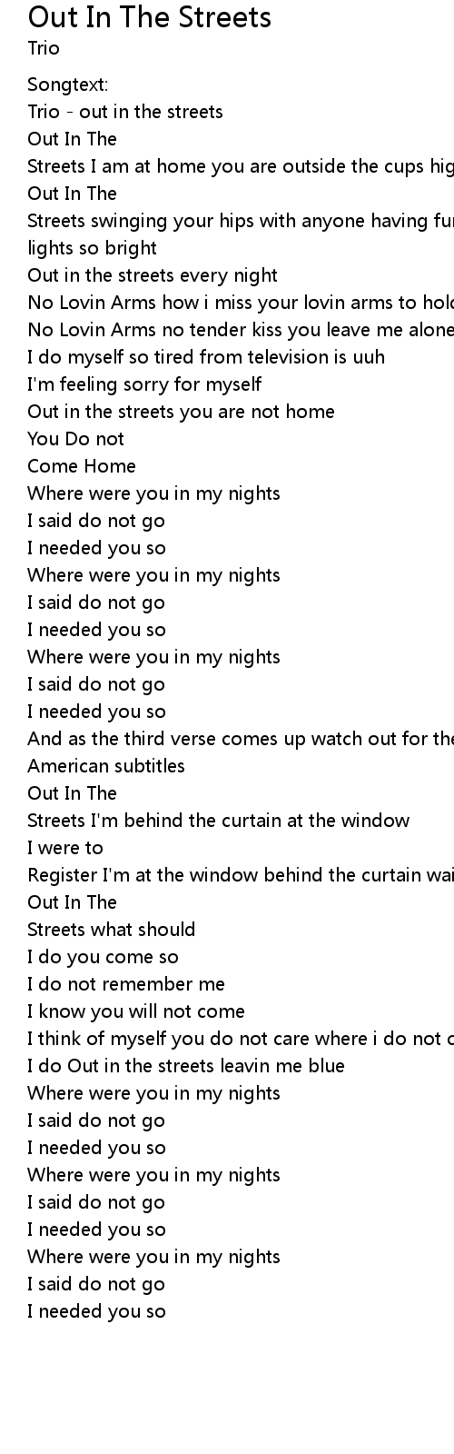 Streets swinging your hips with anyone having fun flying high every night city lights so bright |