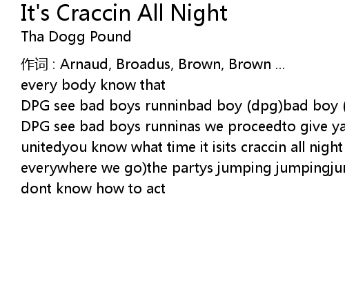 | DPG see bad boys runninas we proceedto give yall what you needsuper powers have unitedyou know what time it isits craccin all night (coast to coast to everywhere we go)the partys jumping jumpingjumpinthe place packgirls round here dont know how to act |