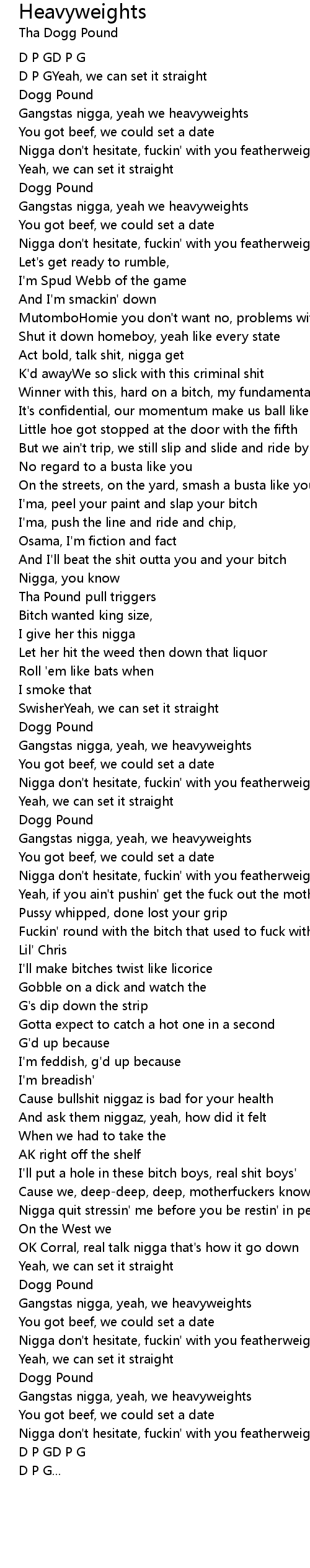 Yeah, if you ain't pushin' get the fuck out the motherfuckin' circle, pussy |