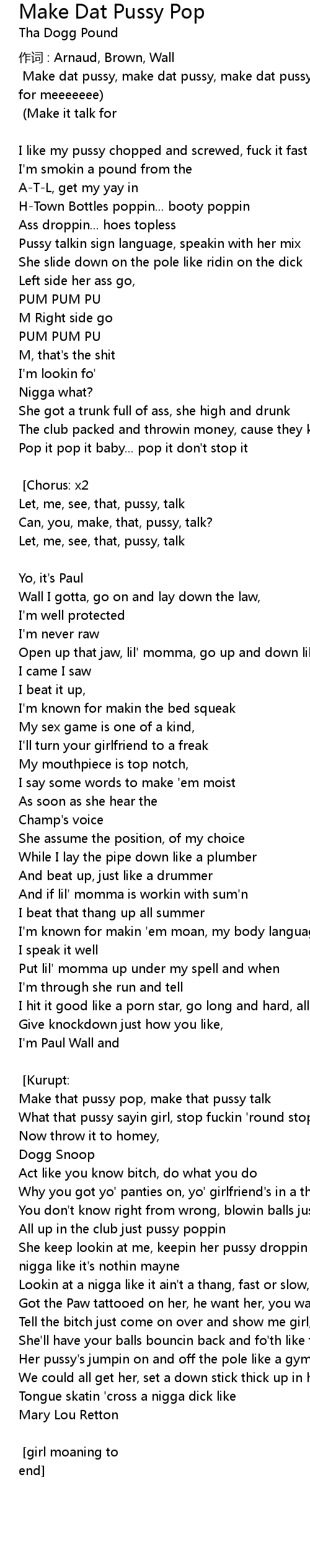 | Make dat pussy, make dat pussy, make dat pussy talk Chorus girl moaning to end |