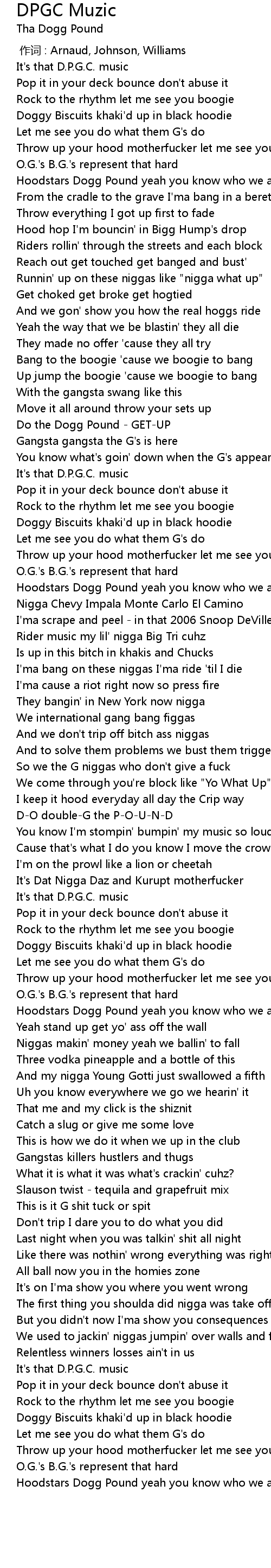 | [02:07.91] | D-O double-G the P-O-U-N-D |