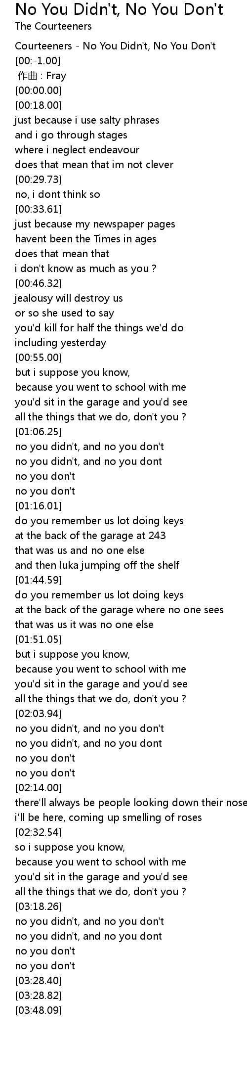 | [00:-2.00] | Courteeners No You Didn' t, No You Don' t |