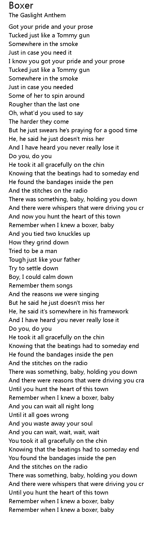 Boxer Lyrics