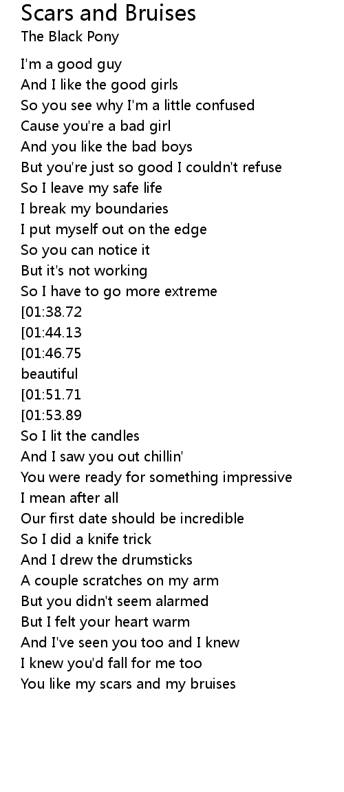You like my scars and my bruises |