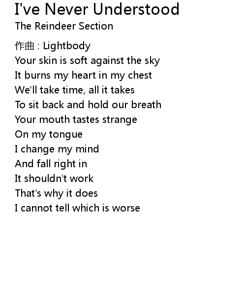 | Song | I've Never Understood |