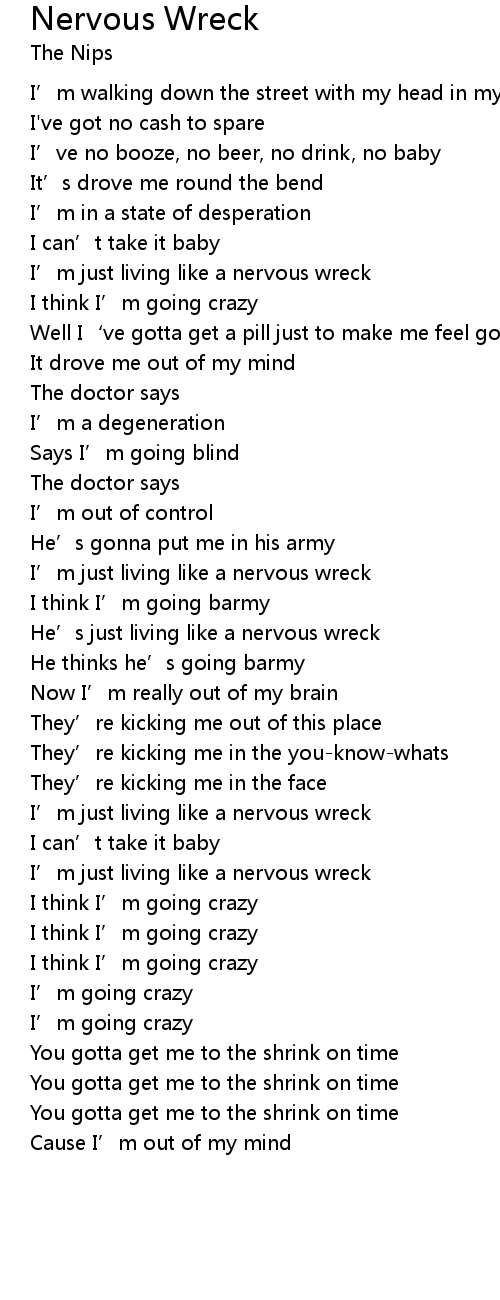 | I' m just living like a nervous wreck | |