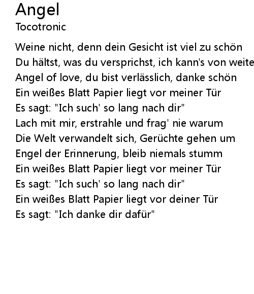 | Angel of love, du bist verl sslich, danke sch n | |