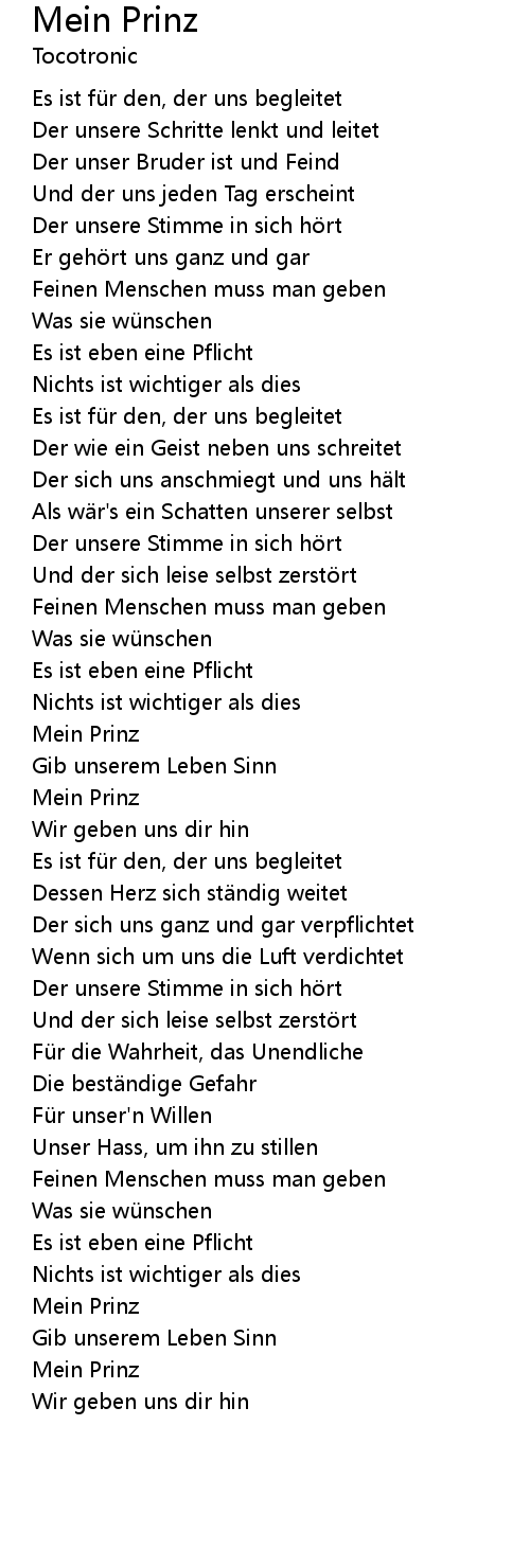 | Song | Mein Prinz |