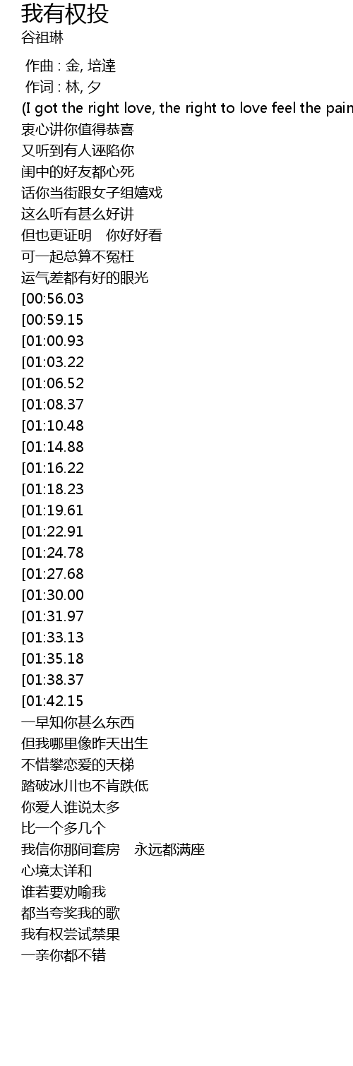 | [02:55.71][01:38.37] | 不知怕甚么 (I got the right to love) |