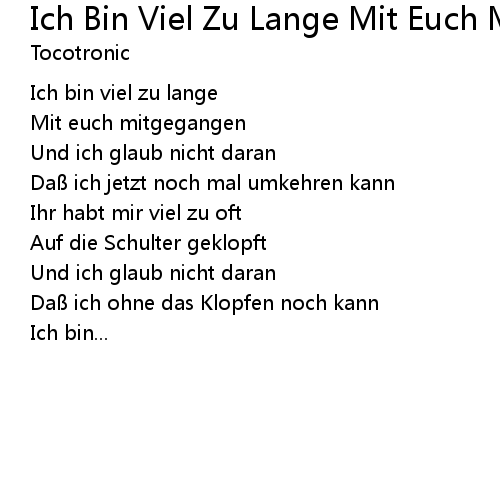 | Song | Ich Bin Viel Zu Lange Mit Euch Mitgegangen |