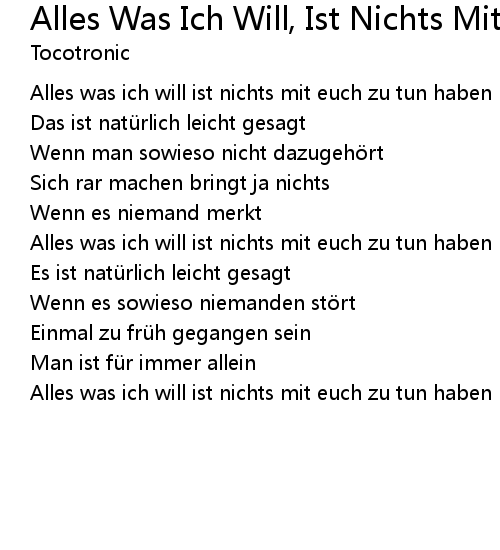 | Song | Alles Was Ich Will, Ist Nichts Mit Euch Zu Tun Haben |