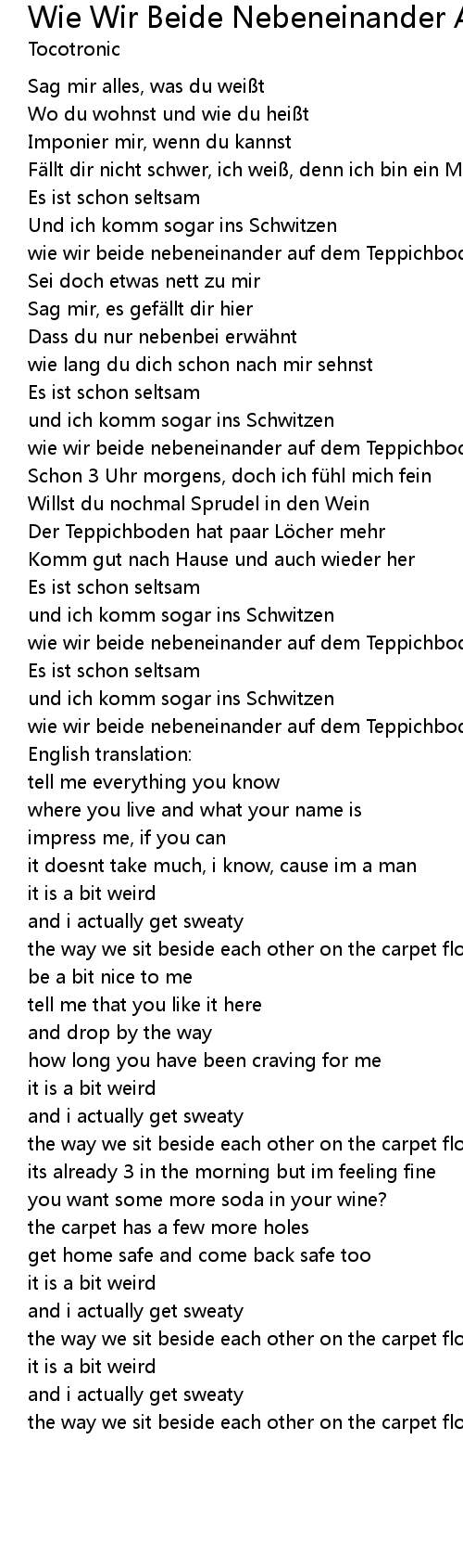 | Song | Wie Wir Beide Nebeneinander Auf Dem Teppichboden Sitzen |