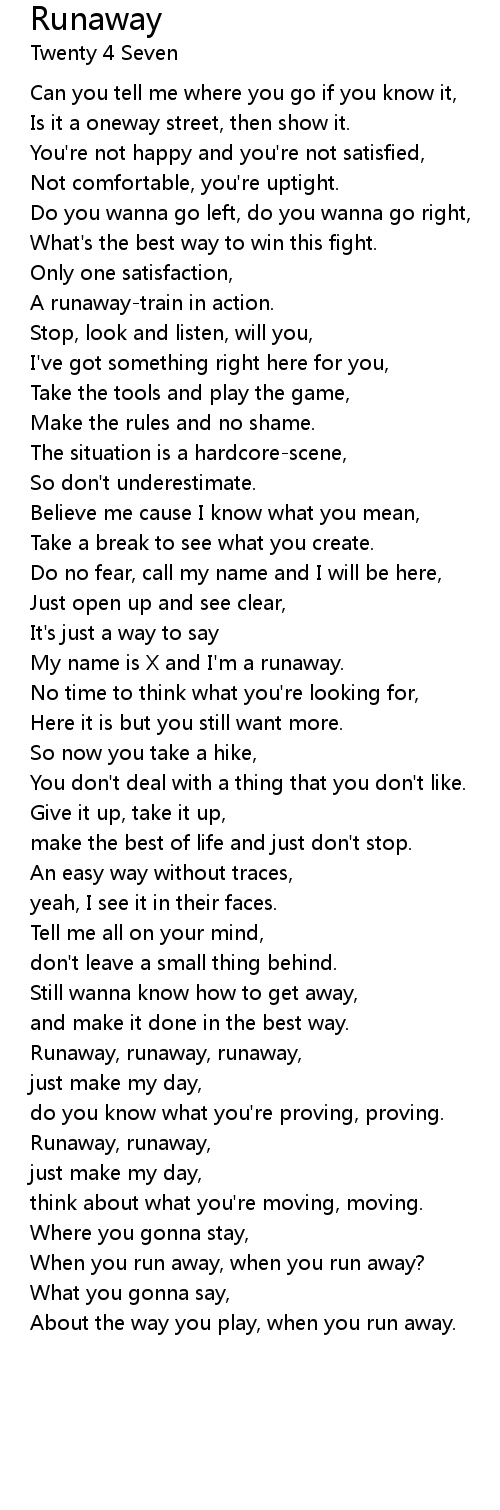 Runaway, runaway, runaway, |