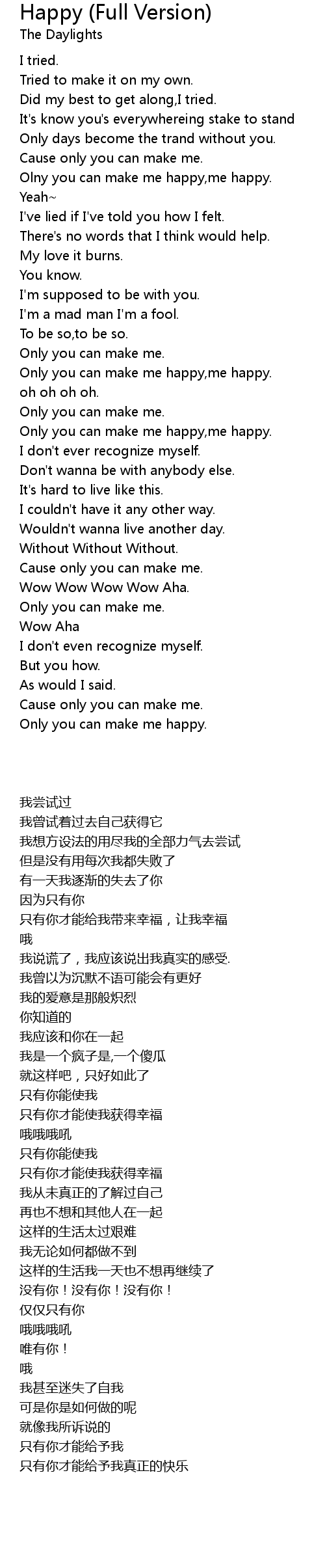 Olny you can make me happy,me happy. |