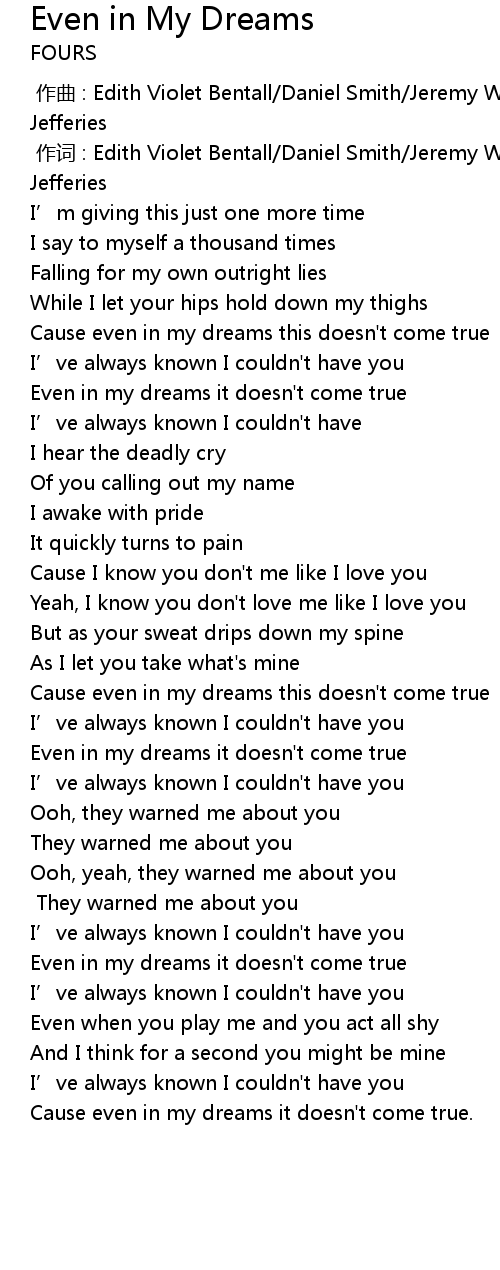 | [01:25.00] | Cause even in my dreams this doesn' t come true |
