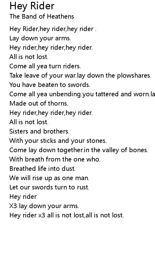Hey Rider,hey rider,hey rider . |