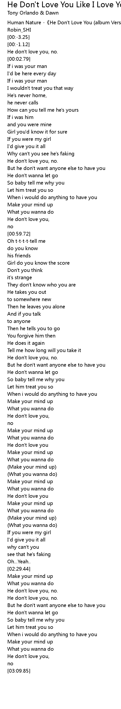 | [00:-7.25] | Human Nature -《He Don't Love You (album Version)》 |