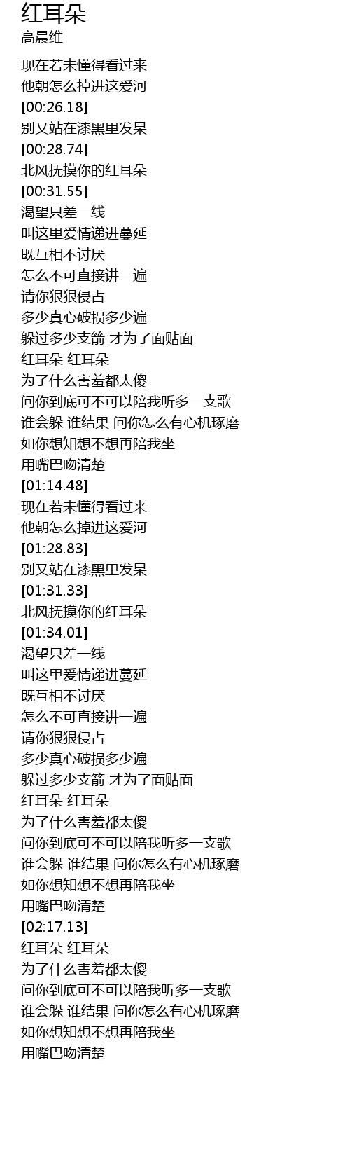 | [00:52.08] | hóng ěr duǒ hóng ěr duǒ |