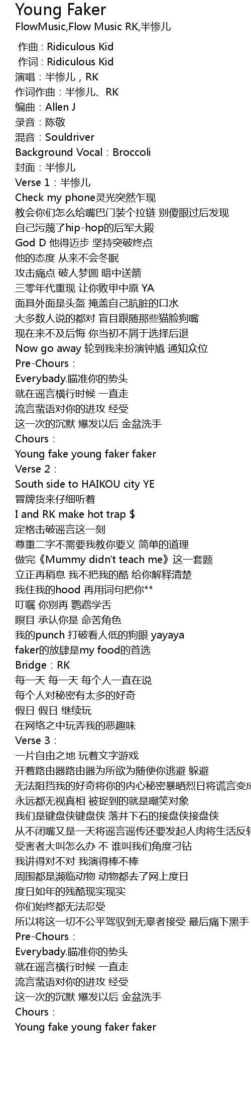 | [00:00.474] | 作词 : Ridiculous Kid |