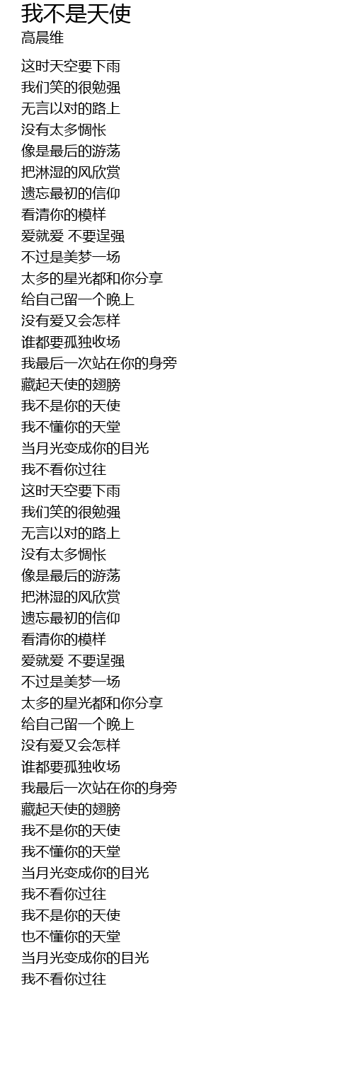 | [01:36.27] | wǒ bú shì nǐ de tiān shǐ |