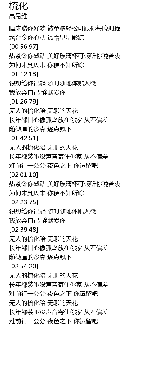 | [02:56.39] | 无人的梳化陪 无聊的天花 |