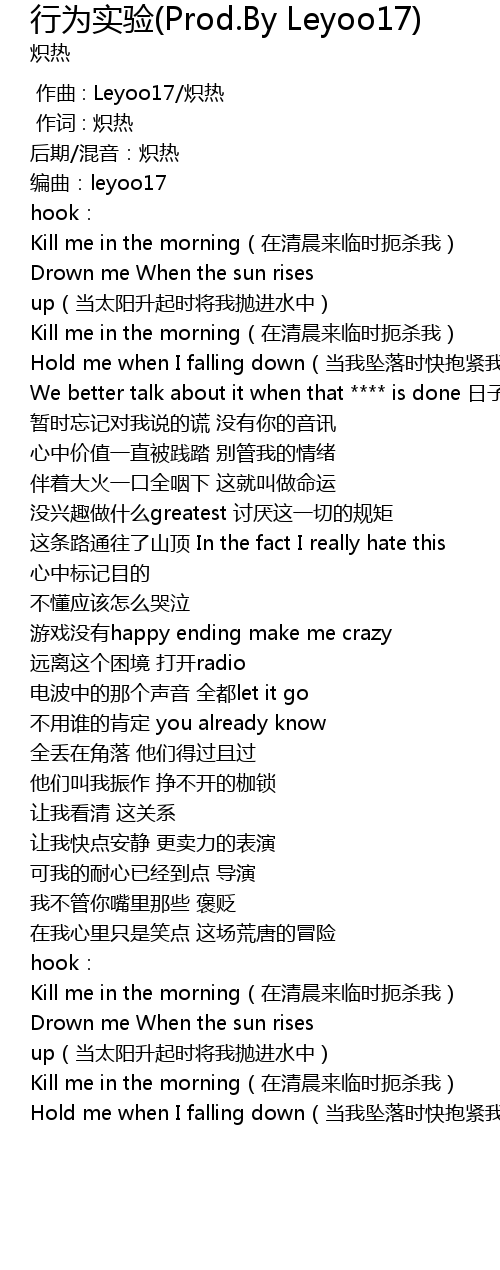 | [00:13.708] | Kill me in the morning(在清晨来临时扼杀我) |