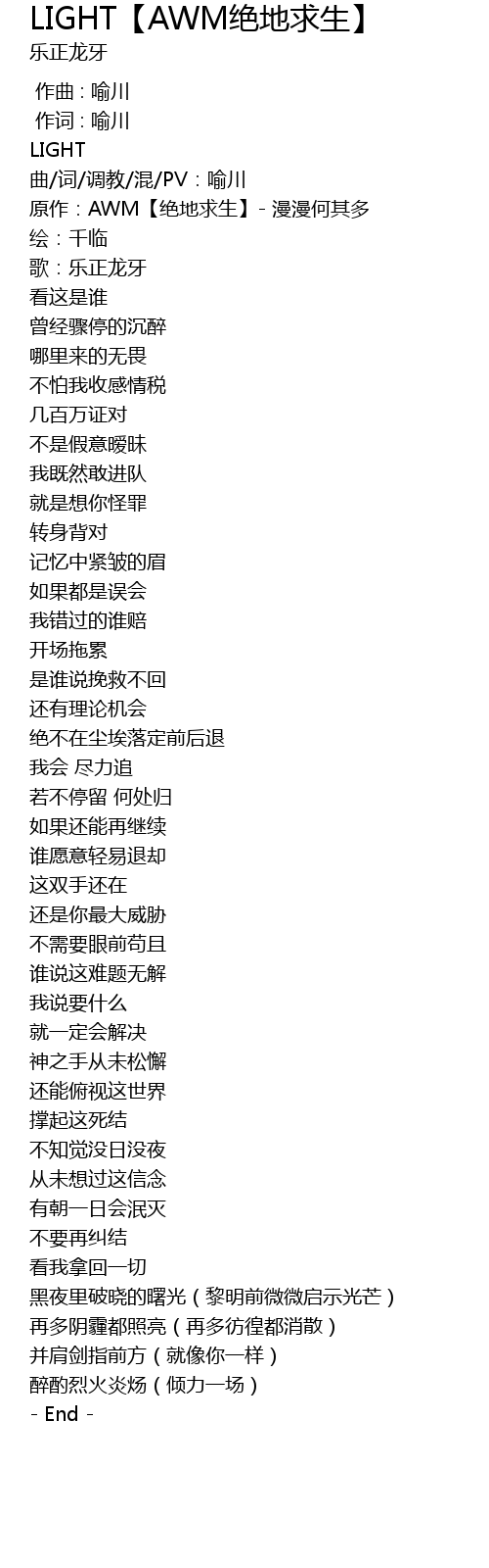 | [00:07.07] | 原作:AWM【绝地求生】- 漫漫何其多 |