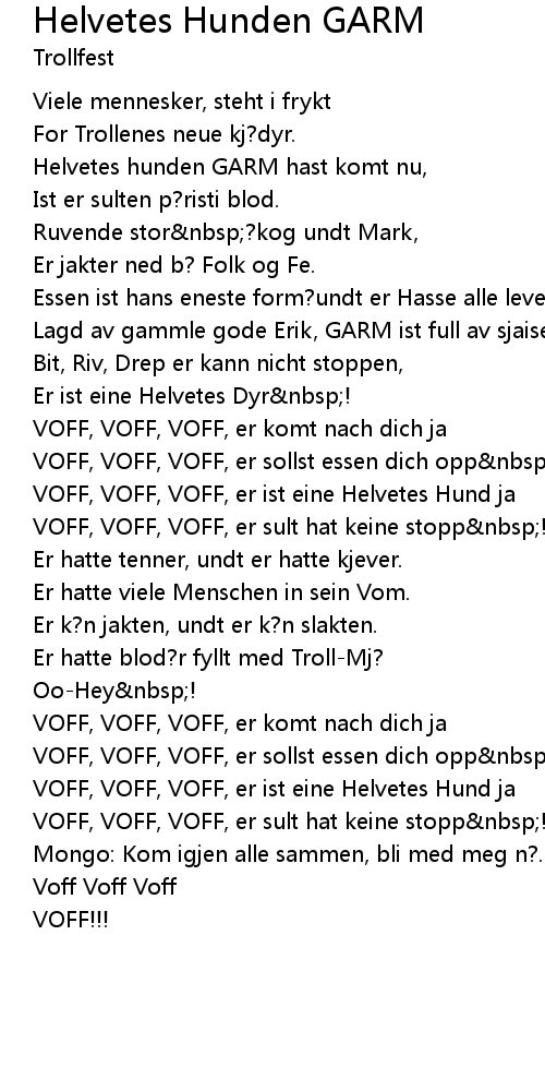 VOFF, VOFF, VOFF, er ist eine Helvetes Hund ja