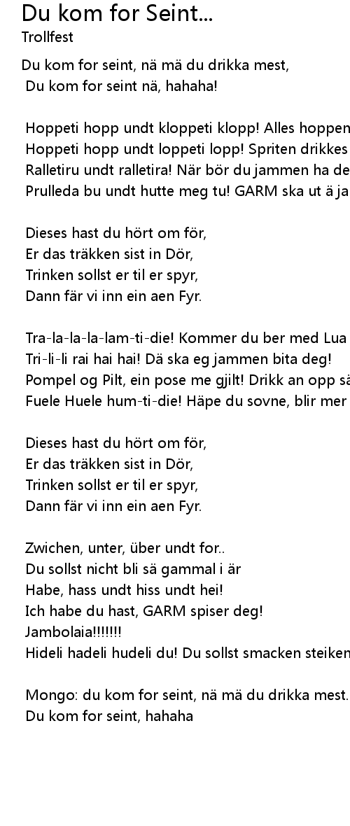 | Prulleda bu undt hutte meg tu! GARM ska ut jakta du!! | |