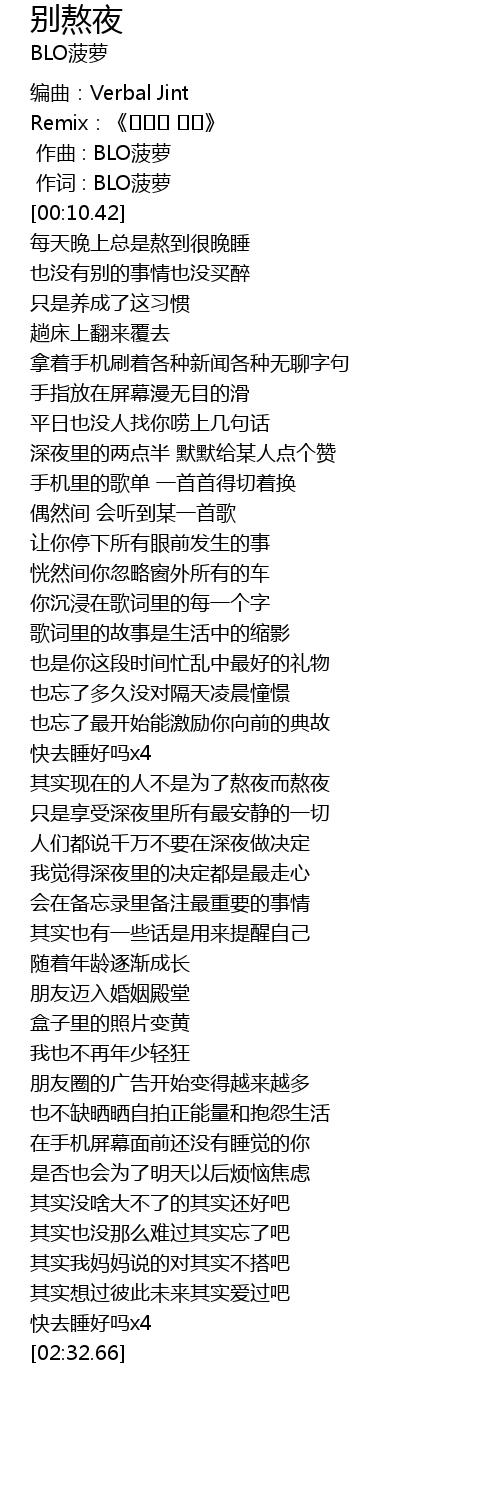 | [00:00.000] | 作曲 : BLO菠萝 |