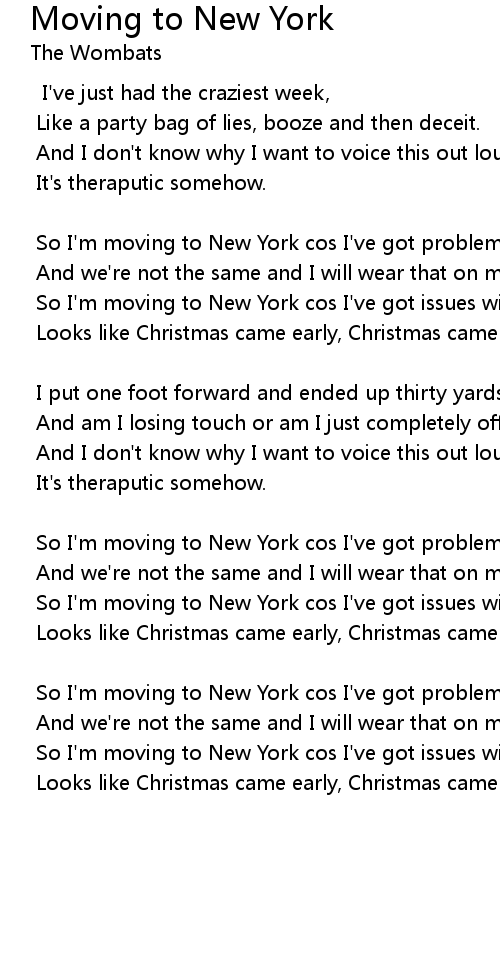 So I'm moving to New York cos I've got issues with my sleep, |