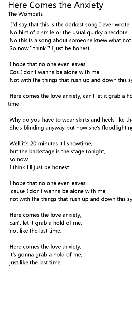 Here comes the love anxiety, can't let it grab a hold of me, not after last time |