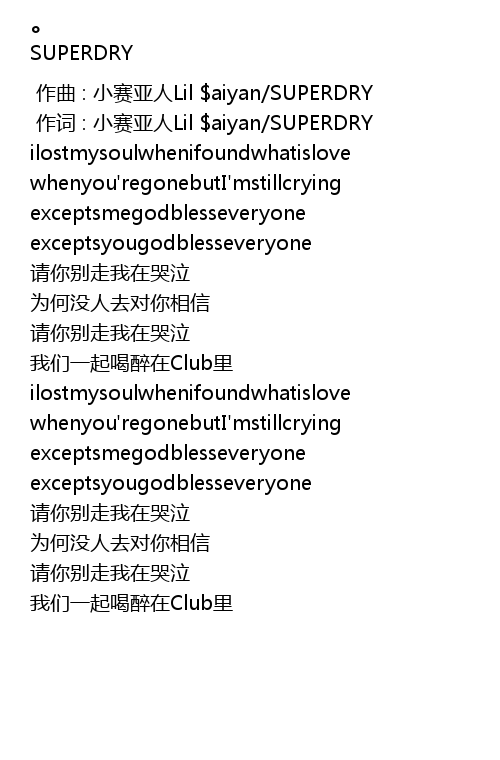 | [00:01.000] | zuo ci : xiao sai ya ren Lil aiyan SUPERDRY |