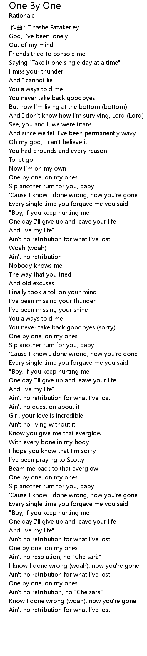 | [00:06.65] | Saying "Take it one single day at a time" |