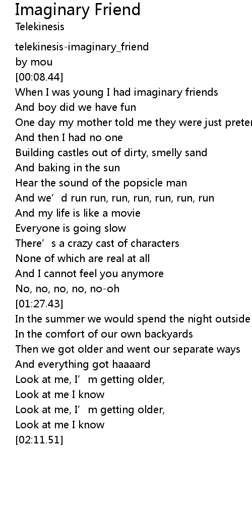 | [00:02.44] | telekinesisimaginary_friend |