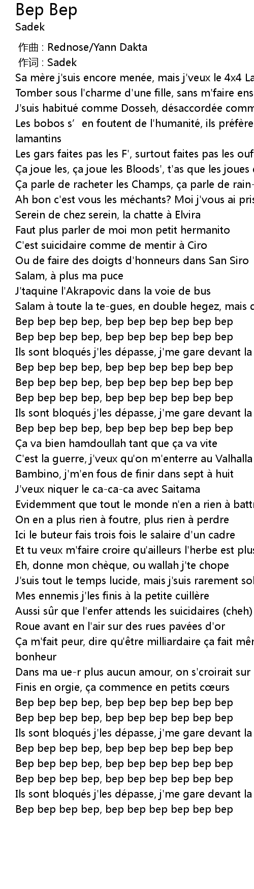 | [02:18.84] | Bep bep bep bep, bep bep bep bep bep bep |
